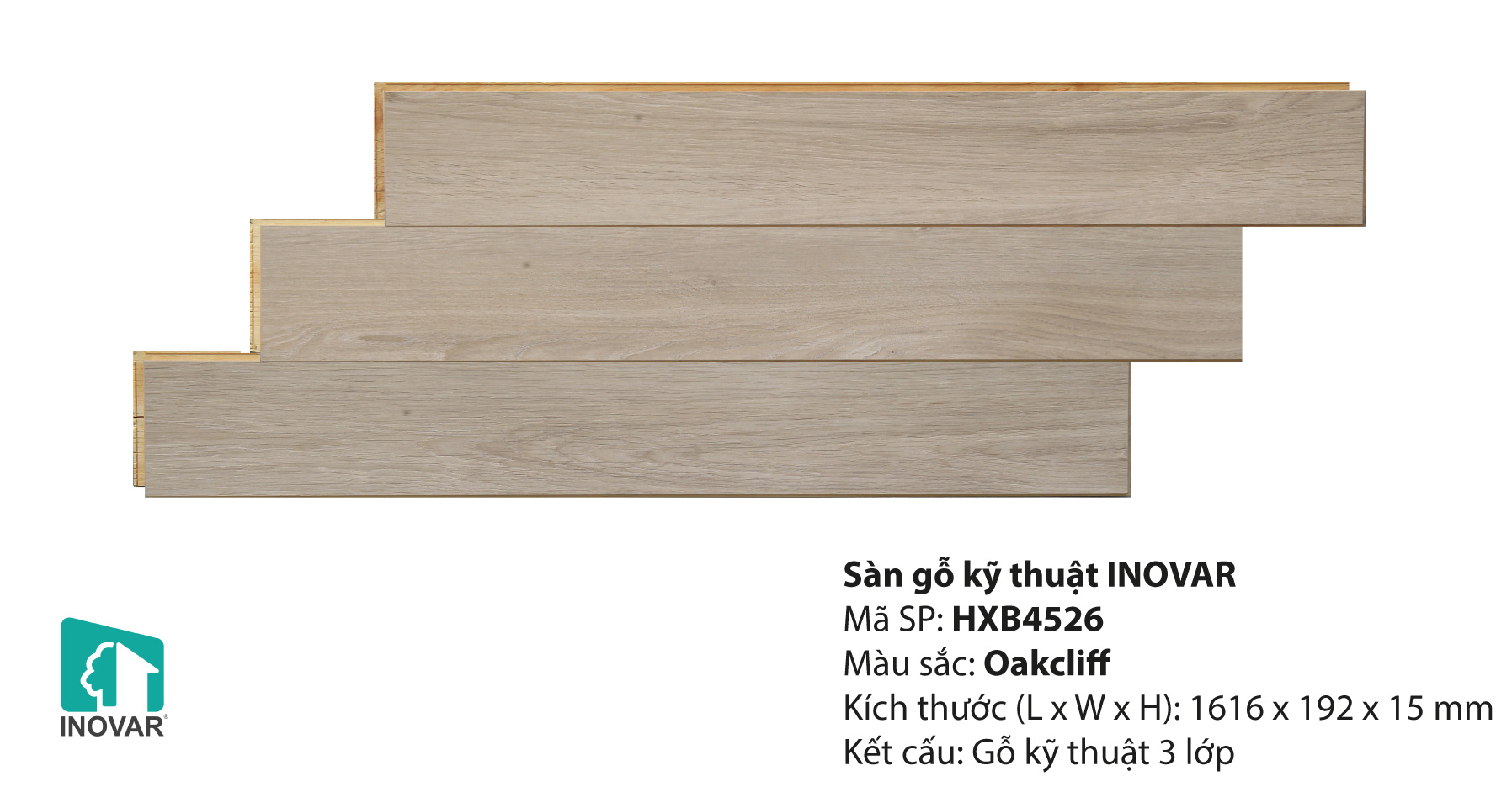Ván sàn Inovar Engineering Floor – Avira H50 Kích thước tấm: 15*140*808mm Đóng gói: 08 tấm/hộp=0,905m2 Bề mặt EIR |
