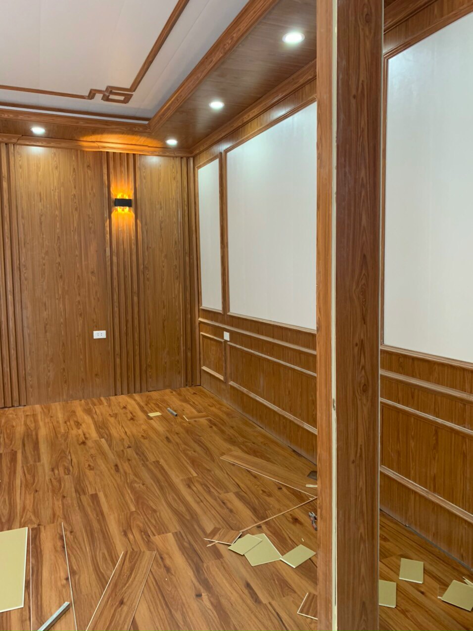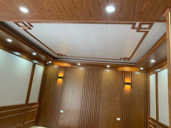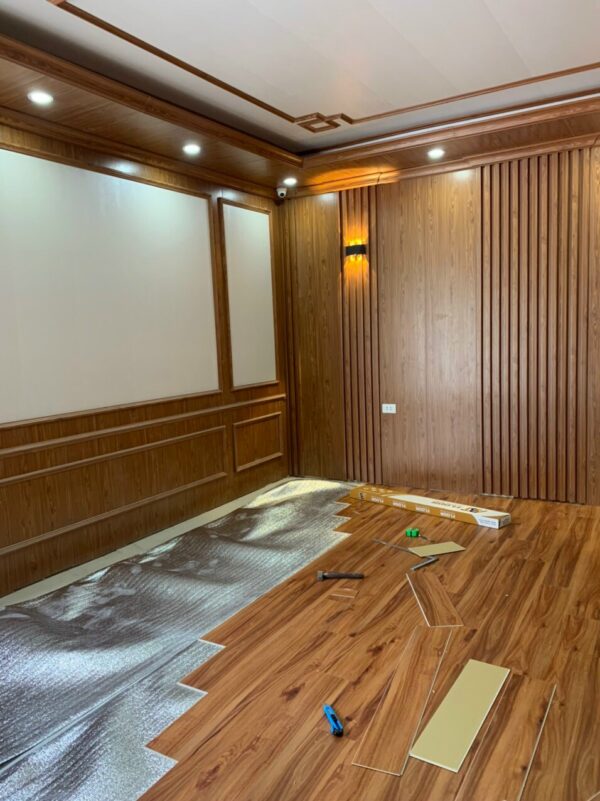 Công trình thi công gồm tấm nhựa nano vân gỗ, tấm nhựa pvc vân đá hoa cương, thi công sàn nhựa chịu lực. các loại phào chỉ nhựa, thanh lam sóng nhựa nano vân gỗ các loại.