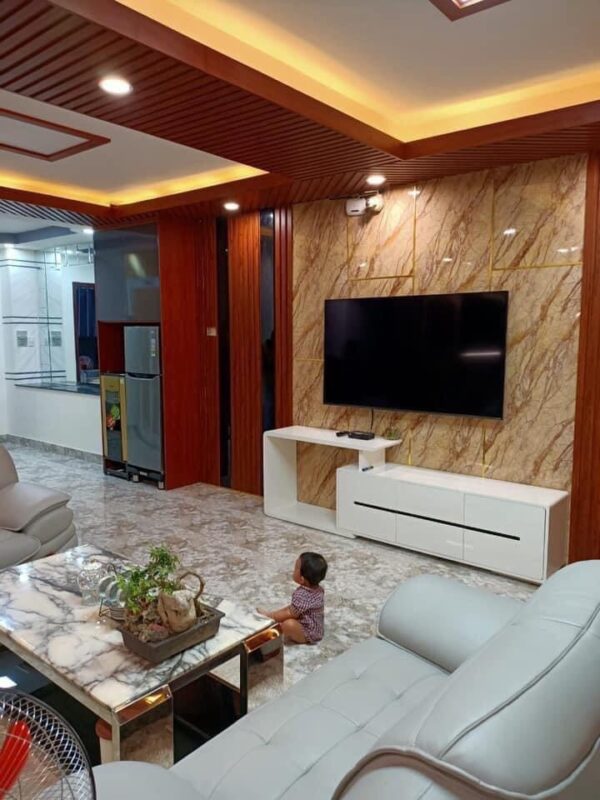 Tấm PVC vân đá là vật liệu trang trí bằng nhựa có kích thước lớn, được dùng để làm đẹp các bề mặt trong không gian kiến trúc như tường, trần, sàn.
